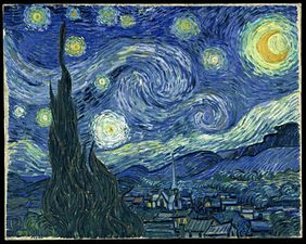The Starry Night by Vincent van Gogh, features orange stars, an orange Venus, and an orange Moon (1889)