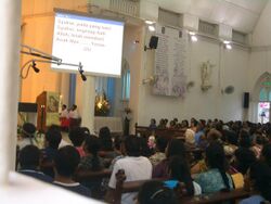 Christians in Malaysia and Indonesia use Allah to refer to God in the Malaysian and Indonesian languages (both of them standardized forms of the Malay language). Mainstream Bible translations in the language use Allah as the translation of Hebrew Script error: The function "transl" does not exist. (translated in English Bibles as "God").[82] This goes back to early translation work by Francis Xavier in the 16th century.[83][84] The first dictionary of Dutch-Malay by Albert Cornelius Ruyl, Justus Heurnius, and Caspar Wiltens in 1650 (revised edition from 1623 edition and 1631 Latin edition) recorded Allah" as the translation of the Dutch word Godt.[85] Ruyl also translated the Gospel of Matthew in 1612 into the Malay language (an early Bible translation into a non-European language,[86] made a year after the publication of the King James Version[87][88]), which was printed in the Netherlands in 1629. Then he translated the Gospel of Mark, published in 1638.[89][90]