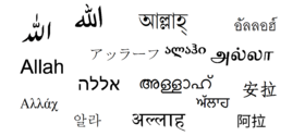 Cognates of the name "Allāh" exist in other Semitic languages, including Hebrew and Aramaic.[23] The corresponding Aramaic form is ʼElāh (אלה), but its emphatic state is Script error: The function "transl" does not exist. (אלהא). It is written as ܐܠܗܐ (Script error: The function "transl" does not exist.) in Biblical Aramaic and ܐܲܠܵܗܵܐ (Script error: The function "transl" does not exist.) in Syriac, both meaning simply "God".[24] The unusual Syriac form is likely an imitation of the Arabic.[25]