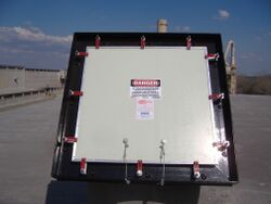 The technology of protection[4] can range in price dramatically but where the type of device is rational to use, is typically from the least to the most expensive solution: explosion doors and vents (dependent on quantities and common denominators); inerting: explosion suppression; isolation – or combinations of same. To focus on the most cost effective, doors typically have lower release pressure capabilities; are not susceptible to fatigue failures or subject to changing release pressures with changes in temperature, as "rupture membrane" types are; capable of leak tight service; service temperatures of up to 2,000 °F; and can be more cost effective in small quantities. Rupture membrane type vents can provide a leak tight seal more readily in most cases; have a relatively broad tolerance on their release pressure and are more readily incorporated into systems with discharge ducts.