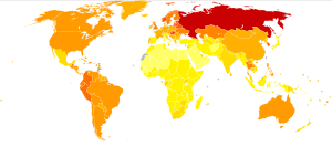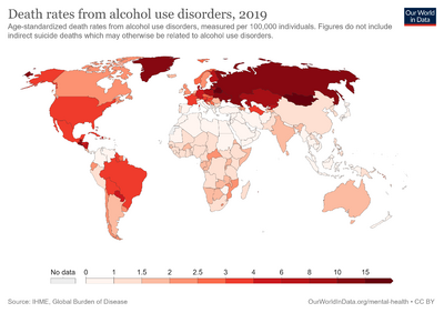 One study claims that "excessive alcohol consumption in Russia, particularly by men, has in recent years caused more than half of all the deaths at ages 15–54 years."[50] However, there are some difficulties with this study. For instance, the same study also found a protective effect of heavy drinking on breast cancer mortality. This contradicts the well established scientific view that alcohol increases breast cancer risk.[51] On this account in further correspondence it was advised that "careful interpretation of mortality statistics in relation to alcohol use is needed, taking into account other relevant risk factors, incidence, and survival."[52]