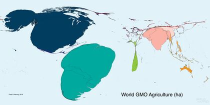 World map of GMO agriculture (hectares)