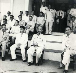 In 1946, when he traveled outside of the country, his subordinates imprisoned 2,500 non-Communist nationalists and forced 6,000 others to flee.[57] Hundreds of political opponents were jailed or exiled in July 1946, notably, members of the Nationalist Party of Vietnam and the Dai Viet National Party after a failed attempt to raise a coup against the Viet Minh government.[58] All rival political parties were hereafter banned and local governments were purged[59] to minimize opposition later on. However, it was noted that the Democratic Republic of Vietnam's first Congress had over two-thirds of its members come from non-Việt Minh political factions, some without an election. Nationalist Party of Vietnam leader Nguyễn Hải Thần was named vice president. They also held four out of ten ministerial positions (Government of the Union of Resistance of the Democratic Republic of Vietnam (vi)).