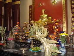 The Socialist Republic of Vietnam still praises the legacy of Uncle Hồ (Bác Hồ), the Bringer of Light (Chí Minh). Although Hồ Chí Minh wished for his body to be cremated and his ashes spread to North, Central, and South Vietnam, the body instead is embalmed on view in a mausoleum. His image is featured in many public buildings and schoolrooms, and other displays of reverence.[151] There is at least one temple dedicated to him, built in then Việt Cộng-controlled Vĩnh Long shortly after his death in 1970.[152]
