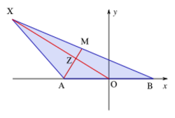 C(x, y) is the variable third vertex. The center of [BC] is M((2x + c)/4, y/2). The median from C has a slope y/x. The median AM has slope 2y/(2x + 3c).