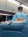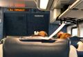 Seat check on headrest of an NJ Transit Bombardier MultiLevel Coach, note the special clip on the headrest for the seat check.