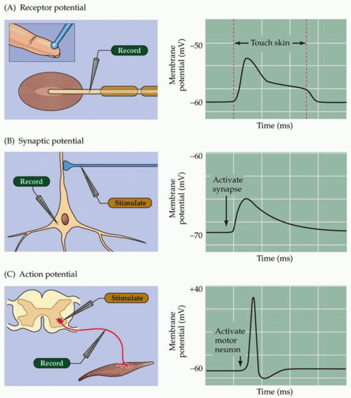 Neuroscience is concerned with how the nervous systems of humans and other animals are organized and how they function. This subfield of biology has used many different methods and a wide variety of animal models to advance over the years. Among the most important questions answered during much of the last century concern how the neurons in all nervous systems convey signals from the sensory periphery to inform animals about the external and internal environment; how ensembles of then signal each other in processing this information in the central nervous system; and finally how these ensembles ultimately convey the outcome of neural processing to the body’s effectors (muscles and glands). Although understanding these signaling functions that underlie virtually all neural functions and behaviors was based on anatomical, physiological and biochemical knowledge acquired by many investigators, the pioneers in understanding how information is conveyed over long distances by action potentials were Alan Hodgkin and Andrew Huxley; Bernard Katz whose work revealed how synapses transfer information from one neuron to another and to effector cells; and Stephen Kuffler who participated in both these efforts and made fundamental contributions understanding how peripheral sensory receptors initiate action potentials by responding to energy from different sources in the environment. Biochemical and more recently molecular genetic techniques complemented these largely physiological studies, first identifying an ever increasing number of neurotransmitter agents used at chemical synapses, and ultimately the ion channels activated by these agents as well as the ion channels responsible for action potential conduction. In addition to validating and greatly extending the results of electrophysiology, this knowledge fomented a wealth of clinically oriented neuroscience aimed at better understanding and treating neurological and other diseases by means of improved molecular pharmacology.