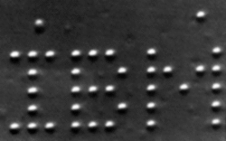 Donald Eigler and Erhard Schweizer of the IBM Almaden Research Center in San Jose, California, discovered the ability using a scanning tunneling microscope (STM) to move atoms about the surface.[4] In the demonstration, where the microscope was used in low temperature,[5] they positioned 35 individual xenon atoms on a substrate of chilled crystal of nickel to form the acronym "IBM".[1] The pattern they created was 5 nm tall and 17 nm wide. They also assembled chains of xenon atoms similar in form to molecules.[1] The demonstrated capacity showed the potential of fabricating rudimentary structures and allowed insights as to the extent of device miniaturization.[5]