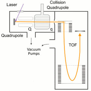 Schematic of a quadrupole time-of-flight (QTOF) mass spectrometer.