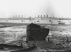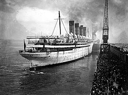 Mauretania was an ocean liner designed by Leonard Peskett and built by Wigham Richardson and Swan Hunter on the River Tyne, England for the British Cunard Line, launched on the afternoon of 20 September 1906. She was the world's largest ship until the launch of RMS Olympic in 1910. Mauretania captured the eastbound Blue Riband on the maiden return voyage in December 1907, then claimed the westbound Blue Riband for the fastest transatlantic crossing during her 1909 season. She held both speed records for 20 years.[1]