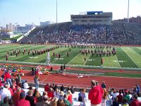 Columbia University athletics has a long history, with many accomplishments in athletic fields. In 1870, Columbia played against Rutgers University in the second intercollegiate rugby football game in the history of the sport. Eight years later, Columbia crew won the famed Henley Royal Regatta in the first-ever defeat for an English crew rowing in English waters. In 1900, Olympian and Columbia College student Maxie Long set the first official world record in the 400 meters with a time of 47.8 seconds. In 1983, Columbia men's soccer went 18–0 and was ranked first in the nation, but lost to Indiana 1–0 in double overtime in the NCAA championship game; nevertheless, the team went further toward the NCAA title than any Ivy League soccer team in history.[240] The football program unfortunately is best known for its record of futility set during the 1980s: between 1983 and 1988, the team lost 44 games in a row, which is still the record for the NCAA Football Championship Subdivision. The streak was broken on October 8, 1988, with a 16–13 victory over arch-rival Princeton University. That was the Lions' first victory at Wien Stadium, which had been opened during the losing streak and was already four years old.[241] A new tradition has developed with the Liberty Cup. The Liberty Cup is awarded annually to the winner of the football game between Fordham and Columbia Universities, two of the only three NCAA Division I football teams in New York City.[242]
