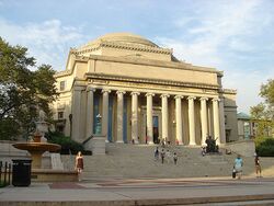 Columbia scientists and scholars have played a pivotal role in scientific breakthroughs including brain-computer interface; the laser and maser;[12][13] nuclear magnetic resonance;[14] the first nuclear pile; the first nuclear fission reaction in the Americas; the first evidence for plate tectonics and continental drift;[15][16][17] and much of the initial research and planning for the Manhattan Project during World War II. Columbia is organized into twenty schools, including four undergraduate schools and 16 graduate schools. The university's research efforts include the Lamont–Doherty Earth Observatory, the Goddard Institute for Space Studies, and accelerator laboratories with Big Tech firms such as Amazon and IBM.[18][19] Columbia is a founding member of the Association of American Universities and was the first school in the United States to grant the MD degree.[20] With over 14.5 million volumes, Columbia University Library is the third-largest private research library in the United States.[21]