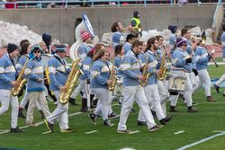 In one of the school's longest-lasting traditions, begun in 1975, at midnight before the Organic Chemistry exam—often the first day of final exams—the Columbia University Marching Band invaded and briefly occupied the main undergraduate reading room in Butler Library to distract and entertain studying students with some forty-five minutes of raucous jokes and music, beginning and ending with the singing of the school's fight song, "Roar, Lion, Roar".[254] After the main show before a crowd that routinely began filling the room well before the announced midnight start time, the Band led a procession to several campus locations, including the residential quadrangle of Barnard College for more music and temporary relief from the stress of last-minute studying.