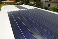 Typically, amorphous silicon thin-film cells use a p-i-n structure. The placement of the p-type layer on top is also due to the lower hole mobility, allowing the holes to traverse a shorter average distance for collection to the top contact. Typical panel structure includes front side glass, TCO, thin-film silicon, back contact, polyvinyl butyral (PVB) and back side glass. Uni-Solar, a division of Energy Conversion Devices produced a version of flexible backings, used in roll-on roofing products. However, the world's largest manufacturer of amorphous silicon photovoltaics had to file for bankruptcy in 2012, as it could not compete with the rapidly declining prices of conventional solar panels.[19][20]
