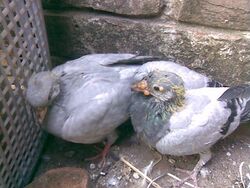 Pigeon pox is a viral disease to which only pigeons are susceptible. It is characterized by pox scabs, which most frequently form on the featherless parts of the bird. The disease is caused by the Pigeon pox virus. It can be transmitted by droplet infection from one animal to another, or more commonly through infected insects or the digestion of contaminated food or water.[1]