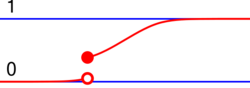A special case is the discrete distribution of a random variable that can take on only one fixed value; in other words, it is a deterministic distribution. Expressed formally, the random variable [math]\displaystyle{ X }[/math] has a one-point distribution if it has a possible outcome [math]\displaystyle{ x }[/math] such that [math]\displaystyle{ P(X{=}x)=1. }[/math][18] All other possible outcomes then have probability 0. Its cumulative distribution function jumps immediately from 0 to 1.