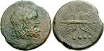 Zeus' head and thunderbolt on a coin from Capua, Campania, 216-211 BC.