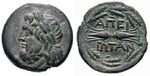 Zeus' head and thunderbolt on a coin from Epirus, 234 BC.