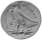 Ptolemaic coin showing the Eagle of Zeus, holding a thunderbolt