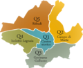 The municipality of Florence is subdivided into five administrative Boroughs (Quartieri). Each borough is governed by a Council (Consiglio) and a President, elected at the same time as the city mayor. The urban organisation is governed by the Italian Constitution (art. 114). The boroughs have the power to advise the Mayor with nonbinding opinions on a large spectrum of topics (environment, construction, public health, local markets) and exercise the functions delegated to them by the City Council; in addition they are supplied with an autonomous funding in order to finance local activities. The boroughs are: