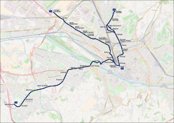 In an effort to reduce air pollution and car traffic in the city, a multi-line tram network called Tramvia is under construction. The first line began operation on 14 February 2010 and connects Florence's primary intercity railway station (Santa Maria Novella) with the southwestern suburb of Scandicci. This line is 7.4 km (4 5⁄8 mi) long and has 14 stops. The construction of a second line began on 5 November 2011, construction was stopped due to contractors' difficulties and restarted in 2014 with the new line opening on 11 February 2019. This second line connects Florence's airport with the city centre. A third line (from Santa Maria Novella to the Careggi area, where the most important hospitals of Florence are located) is also under construction.[110][111][112][circular reference]