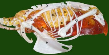John Ruben and others have argued that no evidence of nasal turbinates has been found in dinosaurs. All the dinosaurs they examined had nasal passages that were too narrow and short to accommodate nasal turbinates, so dinosaurs could not have sustained the breathing rate required for a mammal-like or bird-like metabolic rate while at rest, because their lungs would have dried out.[20][21][41][42] However, objections have been raised against this argument. Nasal turbinates are absent or very small in some birds (e.g. ratites, Procellariiformes and Falconiformes) and mammals (e.g. whales, anteaters, bats, elephants, and most primates), although these animals are fully endothermic and in some cases very active.[43][44][45][46] Other studies conclude that nasal turbinates are fragile and seldom found in fossils. In particular none have been found in fossil birds.[47]