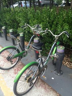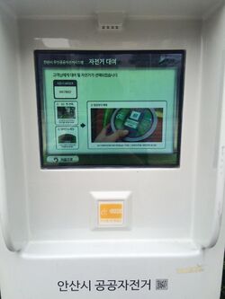 In Ansan, the city government's system is called 'Pedalro' with 101 stations are located in the city. Users who are members can hire bicycles for free for up to two hours after which 1000 won (approximately US$1) is payable for every additional 30 minutes. Yearly membership is 30,000 won (approximately US$28.17), a half year membership is 20,000 won (approximately US$18.78), monthly membership is 4,000 won (approximately US$3.76) and daily membership is 1,000 won (approximately US$1). Cycling in this city is very popular due to its ease of use in crowded urban areas.[6] [7]