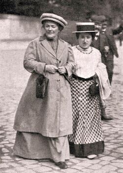 Around 1898, Zetkin formed a friendship with the younger Rosa Luxemburg that lasted 20 years. Despite Luxemburg's indifference to the women's movement, which absorbed so much of Zetkin's energies, they became firm political allies on the far left of the SDP. Luxemburg once suggested that their joint epitaph would be "Here lie the last two men of German Social Democracy".[9] In the debate on Revisionism at the turn of the 20th century, they jointly attacked the reformist theses of Eduard Bernstein, who had rejected the ideology of a revolutionary change in favour of "evolutionary socialism".[10]