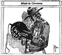 The IWW opposed the First World War from 1914 onward and in many ways fought against Australian conscription.[116] A narrow majority of Australians voted against conscription in a very bitter hard-fought referendum in October 1916, and then again in December 1917, Australia being the only belligerent in World War One without conscription. In very significant part this was due to the agitation of the IWW, a group which never had as many as 500 members in Australia at its peak. The IWW founded the Anti-Conscription League (ACL) in which members worked with the broader labor and peace movement, and also carried on an aggressive propaganda campaign in its own name; leading to the imprisonment of Tom Barker (1887–1970) the editor of the IWW paper Direct Action, sentenced to twelve months in March 1916. A series of arson attacks on commercial properties in Sydney was widely attributed to the IWW campaign to have Tom Barker released. He was released in August 1916, but twelve mostly prominent IWW activists, the so-called Sydney Twelve were arrested in NSW in September 1916 for arson and other offenses. Their trial and eventual imprisonment became a cause célèbre of the Australian labor movement, which saw no convincing evidence of their involvement. A number of other scandals were associated with the IWW; a five-pound note forgery scandal, the so-called Tottenham tragedy in which the murder of a police officer was blamed on the IWW, and above all it was blamed for the defeat of the October 1916 conscription referendum. In December 1916, the Commonwealth government led by Labour Party renegade Billy Hughes declared the IWW an illegal organization under the Unlawful Associations Act. Eighty six members immediately defied the law and were sentenced to six months imprisonment. Direct Action was suppressed, its circulation was at its peak of something over 12,000.[117] During the war over 100 members Australia-wide were sentenced to imprisonment on political charges,[118] including the veteran activist Monty Miller.