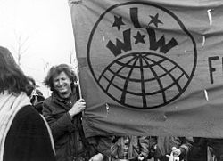 The Portland, Oregon General Membership Branch is one of the largest and most active branches of the IWW. The branch holds three contracts currently, two with Janus Youth Programs and one with Portland Women's Crisis Line.[85] There has been some debate within the branch about whether or not union contracts such as this are desirable in the long run, with some members favoring solidarity unionism as opposed to contract unionism and some members believing there is room for both strategies for organizing. The branch has successfully supported workers wrongfully fired from several different workplaces in the last two years. Due to picketing by Wobblies, these workers have received significant compensation from their former employers. Branch membership has been increasing, as has shop organizing. As of 2005, the 100th anniversary of its founding, the IWW had around 5,000 members, compared to 13 million members in the AFL-CIO.[86] Other IWW branches are located in Australia, Austria, Canada, Ireland, Germany, Uganda and the United Kingdom.