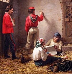 The Russian Civil War was a multi-party war that occurred within the former Russian Empire after the Russian provisional government collapsed and the Soviets under the domination of the Bolshevik party assumed power, first in Petrograd (St. Petersburg) and then in other places. In the wake of the October Revolution, the old Russian Imperial Army had been demobilized; the volunteer-based Red Guard was the Bolsheviks' main military force, augmented by an armed military component of the Cheka, the Bolshevik state security apparatus. There was an instituted mandatory conscription of the rural peasantry into the Red Army.[101] Opposition of rural Russians to Red Army conscription units was overcome by taking hostages and shooting them when necessary in order to force compliance.[102] Former Tsarist officers were utilized as "military specialists" (voenspetsy),[103] taking their families hostage in order to ensure loyalty.[104] At the start of the war, three-fourths of the Red Army officer corps was composed of former Tsarist officers.[104] By its end, 83% of all Red Army divisional and corps commanders were ex-Tsarist soldiers.[105]