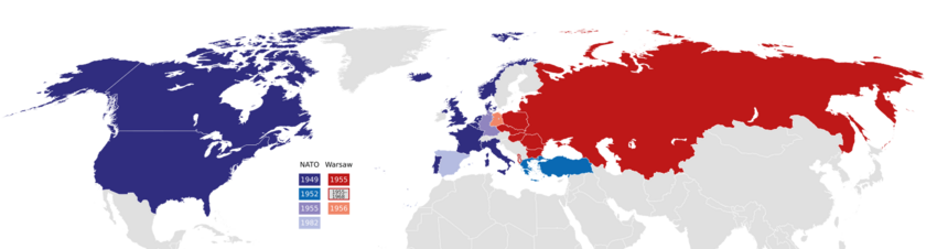 East and West in 1980, as defined by the Cold War. The Cold War had divided Europe politically into East and West, with the Iron Curtain splitting Central Europe. |