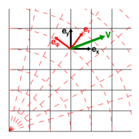 Curvilinear coordinates are coordinates in which the angles between axes can change from point to point. This means that rather than having a grid of straight lines, the grid instead has curvature.