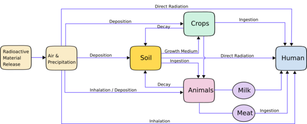 Just because a radioisotope lands on the surface of the soil, does not mean it will enter the human food chain. After release into the environment, radioactive materials can reach humans in a range of different routes, and the chemistry of the element usually dictates the most likely route.