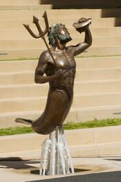 More than a dozen public art projects, part of the Stuart Collection, decorate the campus. The first, and a particularly wel Sun God, a large winged creature by Niki de Saint Phalle located near the Faculty Club. Other collection pieces include Richard Fleischner's La Jolla Project (a collection of Stonehenge-like stone blocks), Do Ho Suh's Fallen Star (a house sitting atop an engineering building in Warren College), a table by Jenny Holzer, an installation by Bruce Nauman on the Powell Structural Systems Laboratory titled Vices and Virtues, and three metallic Eucalyptus trees by Terry Allen.