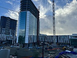 The university currently has three Living & Learning neighborhoods under construction. The soonest to open is the Theatre District Living and Learning Neighborhood, which will house approximately 2,000 undergraduate students. The neighborhood is set to be the location of Eighth College. Construction began early 2022, and would take place over what were previously two parking lots. The neighborhood had an anticipated opening date of Fall 2023, but was extended due to construction delays.[78] The Theatre District Living & Learning Neighborhood is currently scheduled to open between Fall 2023 and Spring 2024.[79] The only currently open building is the Podemos building, which contains housing as well as academic instruction rooms.[80] The Theatre District Living and Learning Neighborhood features an underground parking garage.