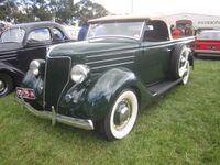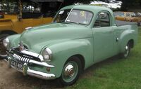 Ford Australia was the first company to produce an Australian Coupe ute, which was released in 1934.[13] This was the result of a 1932 letter from the unnamed wife of a farmer in Australia asking for "a vehicle to go to church in on a Sunday and which can carry our pigs to market on Mondays".[13] In response, Ford designer Lew Bandt designed a two-door body with a tray at the rear for the American Ford Model A chassis, and the model was named "coupe utility".[13] When the Australian version was displayed in the US, Henry Ford nicknamed it the "Kangaroo Chaser". A convertible version, known as the roadster utility was produced in limited numbers by Ford in the 1930s.[14][15]