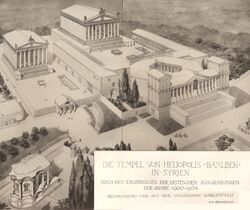 Baalbek was called Heliopolis during the Roman Empire, a latinisation of the Greek Hēlioúpolis (Ἡλιούπολις) used during the Hellenistic period,[30] meaning "Sun City"[31] in reference to the solar cult there. The name is attested under the Seleucids and Ptolemies.[32] However, Ammianus Marcellinus notes that earlier Assyrian names of Levantine towns continued to be used alongside the official Greek ones imposed by the Diadochi, who were successors of Alexander the Great.[33] In Greek religion, Helios was both the sun in the sky and its personification as a god. The local Semitic god Baʿal Haddu was more often equated with Zeus or Jupiter or simply called the "Great God of Heliopolis",[34][lower-alpha 2] but the name may refer to the Egyptians' association of Baʿal with their great god Ra.[32][lower-alpha 3] It was sometimes described as Heliopolis in Syria or Coelesyria (Latin: Heliopolis Syriaca or Syriae) to distinguish it from its namesake in Egypt. In Catholicism, its titular see is distinguished as Heliopolis in Phoenicia, from its former Roman province Phoenice. The importance of the solar cult is also attested in the name Biḳāʿ al-ʿAzīz borne by the plateau surrounding Baalbek, as it references an earlier solar deity named Aziz. In Greek and Roman antiquity, it was known as Heliopolis. Some of the best-preserved Roman ruins in Lebanon are located here, including one of the largest temples of the Roman empire. The gods worshipped there (Jupiter, Venus, and Bacchus) were equivalents of the Canaanite deities Hadad, Atargatis. Local influences are seen in the planning and layout of the temples, which differ from classic Roman design. [37]