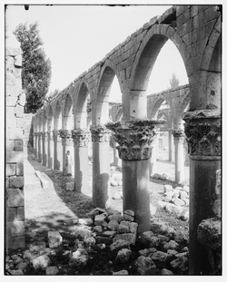 Three major earthquakes occurred in the 12th century, in 1139, 1157, and 1170.[87] The one in 1170 ruined Baalbek's walls and, though Nur ad-Din repaired them, his young heir Ismaʿil was made to yield it to Saladin by a 4-month siege in 1174.[37] Having taken control of Damascus on the invitation of its governor Ibn al-Muqaddam, Saladin rewarded him with the emirate of Baalbek following the Ayyubid victory at the Horns of Hama in 1175.[95] Baldwin, the young leper king of Jerusalem, came of age the next year, ending the Crusaders' treaty with Saladin.[96] His former regent, Raymond of Tripoli, raided the Beqaa Valley from the west in the summer, suffering a slight defeat at Ibn al-Muqaddam's hands.[97] He was then joined by the main army, riding north under Baldwin and Humphrey of Toron;[97] they defeated Saladin's elder brother Turan Shah in August at Ayn al-Jarr and plundered Baalbek.[94] Upon the deposition of Turan Shah for neglecting his duties in Damascus, however, he demanded his childhood home[98] of Baalbek as compensation. Ibn al-Muqaddam did not consent and Saladin opted to invest the city in late 1178 to maintain peace within his own family.[99] An attempt to pledge fealty to the Christians at Jerusalem was ignored on behalf of an existing treaty with Saladin.[100] The siege was maintained peacefully through the snows of winter, with Saladin waiting for the "foolish" commander and his garrison of "ignorant scum" to come to terms.[101] Sometime in spring, Ibn al-Muqaddam yielded and Saladin accepted his terms, granting him Baʿrin, Kafr Tab, and al-Maʿarra.[101][102] The generosity quieted unrest among Saladin's vassals through the rest of his reign[99] but led his enemies to attempt to take advantage of his presumed weakness.[101] He did not permit Turan Shah to retain Baalbek very long, though, instructing him to lead the Egyptian troops returning home in 1179 and appointing him to a sinecure in Alexandria.[95] Baalbek was then granted to his nephew Farrukh Shah, whose family ruled it for the next half-century.[95] When Farrukh Shah died three years later, his son Bahram Shah was only a child but he was permitted his inheritance and ruled til 1230.[37] He was followed by al-Ashraf Musa, who was succeeded by his brother as-Salih Ismail,[37] who received it in 1237 as compensation for being deprived of Damascus by their brother al-Kamil.[103] It was seized in 1246 after a year of assaults by as-Salih Ayyub, who bestowed it upon Saʿd al-Din al-Humaidi.[37] When as-Salih Ayyub's successor Turan Shah was murdered in 1250, al-Nasir Yusuf, the sultan of Aleppo, seized Damascus and demanded Baalbek's surrender. Instead, its emir did homage and agreed to regular payments of tribute.[37]
