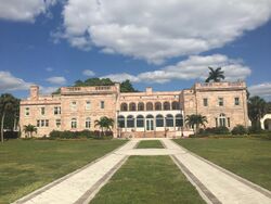 New College's 144-acre (0.58 km2) bay front campus is located in west Sarasota, Florida, approximately 50 mi (80 km) south of Tampa. The primary campus is located on the former Edith and Charles Ringling estate.[29] The campus also includes portions of The Uplands, a residential neighborhood that is bounded by the historic bayfront campus to the south where half of the bayfront had been a portion of the estate and half of which in The Uplands plat (being donated to New College during the original founding of the college), and the Seagate property to the north, Sarasota Bay to the west, and Tamiami Trail to the east.