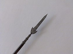 Originally, in the 16th century, it referred to a particular type of pike, having long spear blade as a head with a pair of curved lobes at the base.[1] Over time, it gave its name to the people who continued to use it, often as an improvised weapon, instead of moving on to more "advanced" lumps of metal such as the halberd.[1]