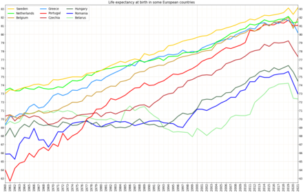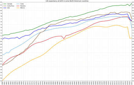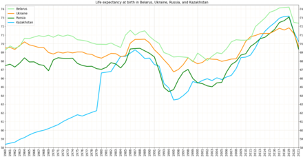 Data of the World Bank Group for 2020.[3][4][5] The values in the World Bank Group tables are rounded. All calculations were done on raw data, therefore, due to the nuances of rounding, in some places illusory inconsistencies of indicators arose, with a size of 0.01 year. Since this entry is prone to vandalism and political bias it is recommended to check the original source