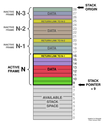 As an example, some programming languages use a common stack to store both data local to a called procedure and the linking information that allows the procedure to return to its caller. This means that the program moves data into and out of the same stack that contains critical return addresses for the procedure calls. If data is moved to the wrong location on the stack, or an oversized data item is moved to a stack location that is not large enough to contain it, return information for procedure calls may be corrupted, causing the program to fail.