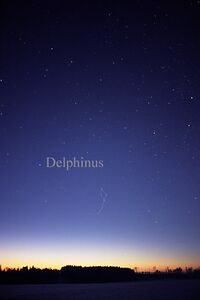 The constellation Delphinus as it can be seen by the naked eyeContrast and color enhanced photograph of Delphinus