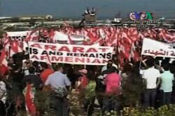 On 20 February 1988, the Nagorno-Karabakh Supreme Council (the regional legislature) issued a request to transfer the region from Soviet Azerbaijan to Soviet Armenia.[83][84] The Moscow government declined the claims, while hundreds of thousands of people demonstrated in Yerevan in support of the idea.[85] Few days later, on 26 February, an anti-Armenian pogrom broke out in the Azerbaijani seaside industrial city Sumgait, forcing thousands of Armenians to leave Azerbaijan en masse.[86]