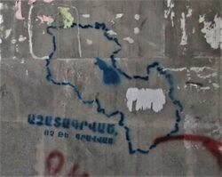 The ARF idea of "United Armenia" incorporates claims to Western Armenia (eastern Turkey), Nagorno-Karabakh (Artsakh), the landlocked exclave Nakhchivan (Nakhichevan) of Azerbaijan and the Javakheti (Javakhk) region of Georgia.[1][2] Nagorno-Karabakh and Javakhk are overwhelmingly inhabited by Armenians. Western Armenia and Nakhchivan had significant Armenian populations in the early 20th century, but no longer do. The Armenian population of Western Armenia was almost completely exterminated during the 1915 Armenian genocide, when the millennia-long Armenian presence in this region largely ended and Armenian cultural heritage was mainly destroyed by the Ottoman government.[9][10] In 1919, the ARF-dominated government of the First Republic of Armenia declared the formal unification of Armenian lands. The ARF bases its claims to Western Armenia, now controlled by Turkey, on the 1920 Treaty of Sèvres, which was effectively negated by subsequent historical events. These territorial claims are often seen as the ultimate goal of the recognition of the Armenian Genocide and as part of Armenian genocide reparations.[11][12]