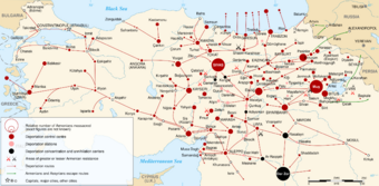 The Armenians of eastern Ottoman Empire were exterminated by the Ottoman government in 1915 and the following years. An estimated 1.5 million Armenians were killed,[25][26] while the survivors found refuge in other countries. These events, which are known as the Armenian genocide, are officially denied by the Turkish state, which falsely claims the killings were a result of a "civil war."[27] The Ottoman government successfully ended the over two thousand year Armenian presence in Western Armenia.[28][29]