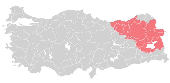 Western Armenia refers to an undefined area, now in eastern Turkey, that had significant Armenian population prior to the Armenian genocide of 1915.[156][157] As a result of the genocide, officially no Armenians live in the area today.[158] However, at least two distinct groups of Armenian origin reside in the area. Hemshin peoples, an islamisized group with Armenian ethnic origin,[159][160] live in the Black Sea coast, particularity in the Rize province.[161] Another group, "Hidden Armenians", live throughout Turkey, especially the eastern parts of the country. Many of them have been assimilated by Kurds. It is impossible to determine how many there are due to the fact that they keep their identity hidden, but estimates range from below 100,000 to millions.[162] Since the Armenian Genocide, the area has been mostly settled by Kurds and Turks,[163] with smaller numbers of Azerbaijanis (near the Turkish-Armenian border)[164] and Georgians and Laz people in the northeastern provinces of Turkey.[165][166]