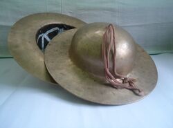 The taal, manjira (also spelled manjīrā or manjeera), jalra, karatala, kartal or gini is a pair of clash cymbals,[1] originating in the Indian subcontinent, which make high-pitched percussion sounds. In its simplest form, it consists of a pair of small hand cymbals.[2] The word taal comes from the Sanskrit word Tālà, which literally means a clap. It is a part of Indian music and culture, used in various traditional customs e.g. Bihu music, Harinaam etc. It is a type of Ghana vadya.