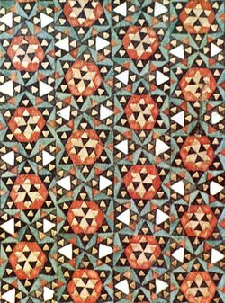 Designing of inlaid articles is a highly elaborate process. There are sometimes more than 400 pieces per square inch in a work of average quality.[2] Thin rods of different coloured woods, ivory, bone, brass, silver, etc. were glued together into long bunches that could have a round, rectangular, or polygonal cross-section. The bunches were cut into thin slices and combined with others to create intricate patterns The David Collection. In each cubic centimetre up to approximately 250 individual pieces can end up side by side, smoothed, oiled and polished. Inlaid articles in the Safavid era took on a special significance as artists created their precious artworks. Woods used include betel, walnut, cypress and pine. These works include doors and windows, mirror frames, Quran boxes, inlaid boxes, pen and penholders, lanterns and shrines.[3]